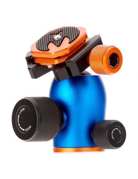 The AirHed Pro features a knurled knob which is used to control the ballhead. The ball can be tightened into a variety of positions, and the entire head can be rotated 360 ̊ on its base. The copper control knob tightens the clamp, so users can ensure their camera is held securely in place. The head features a bubble level, ensuring pictures are all perfectly aligned.,