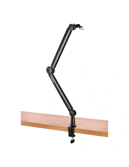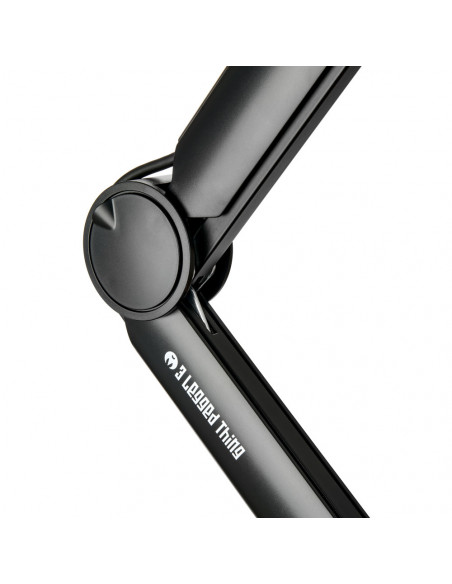 The professional studio microphone arm Named after pioneering female DJ Annie Nightingale, the 3 Legged Thing Annie Professional Studio Microphone Arm is a professional studio microphone arm designed for broadcast or recording studios. With a balanced, quiet spring mechanism for smooth, omni directional movement and 360Ë rotation, Annie ensures effortless adjustments and perfect positioning. The integrated cable management keeps setups tidy and it securely attaches to desks via a clamp or grommet system. Highlights Compatible with standard microphone thread Silent spring mechanism for smooth omni directional movement & 360Ë rotation Integrated cable management system Choice of desk clamp / pass through mount for on desk use Supports microphones weighing up to 1kg Strong and stable Annie is compatible with standard microphone threads, thanks to the included 3/8â and 5/8â adapters, and supports microphones weighing up to 1kg. Annie is suitable for all microphones, including professional USB microphones with shock mounts or phantom powered condenser microphones., Max height: 84.7 cm Min height 50 cm Max Width 40.2 cm Folded Length 49.2cm/19.4â without clamp Weight; 1.5 kg Load capacity: 1kg Mounting: desk clamp/through mount Clamp size: 1 55cm/04 22â Panning: 360° Product mount: 3/8â 16 & 5/8â 11 Material: magnesium alloy 5 year warranty