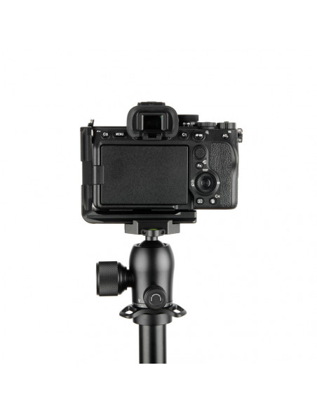 The perfect fit for your camera This Arca Swiss compatible dedicated 3 Legged Thing Arnie QD Sony Alpha L Bracket Darkness is designed to fit perfectly on a number of recent Sony cameras, including the A7 IV, A7R V, A7 III, A7R III, A7R IV, A7S II, A7S III, A9 II and A1 camera bodies. Highlights Arca Swiss compatible Quick release plate Full access to side ports and battery cover Recess in vertical aspect allows use of flip screens The ARNIE L bracket is precision manufactured from a single block of aerospace grade magnesium alloy. This construction provides excellent rigidity. ARNIE gives users access to the battery door and side ports on all cameras. The side cutout allows for upright or tilted opening of the rear screens, and another cutout provides access to the camera strap. ARNIE's base has an integrated QD (quick detach) port for use with QD accessories. It also has a slot for attaching camera straps and two 3/8" 16 threads with ¼â 20 adapters for attaching accessory arms. The front of the L bracket has a contoured lip so it fits perfectly around the bottom of the camera. 3 Legged Thing has a Peak Design v3 Capture compatible adapter included in the box. This rugged fiberglass reinforced nylon adapter allows users to use the ARNIE with their v3 Capture clips. , Length of base: 10.2 cm Width of base: 4.2 cm Working range of base: n/a. Vertical perspective height: 8.5 cm Vertical width: 4.2 cm Shoe: 38 mm Weight: 95 g Compatibility For Sony Alpha cameras Mounting screw: 1/4" 20 Material: Milled magnesium alloy 5 year warranty , 1 x 3 Legged Thing Arnie QD Sony Alpha L Bracket 1 x Tool double ended Allen wrench 1 x Stagsden stainless steel 1/4" 20 camera screw 1 x Peak Design Capture compatible adapter plate with longer 1/4" 20 pass thru camera screw 1 x 3 Legged Thing Reusable Cable Tie