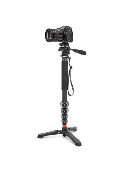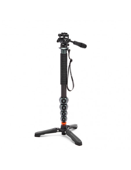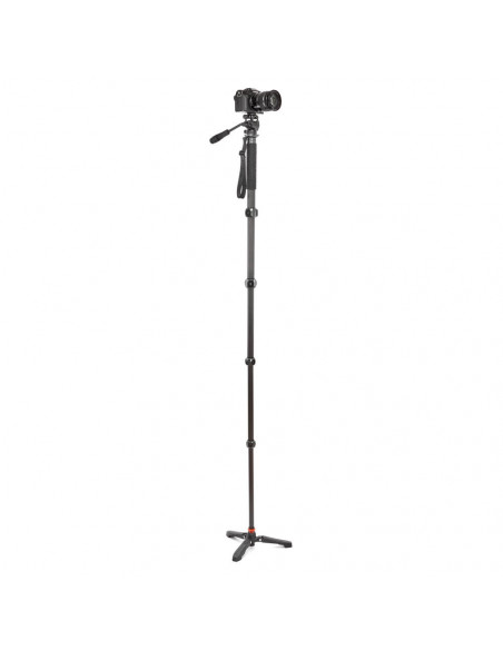 Alana Super Kit Made from 8 layers of 100% pure Carbon fibre, the 3 Legged Thing Legends Alana 2.0 Darkness/Matte Black Monopod Kit w/DOCZ2 Foot Stabiliser & AH Trinity Darkness/Matte Black is both strong and light, yet can carry up to 60 kg of camera gear. Alana's top has a large rubber grip for comfort alongside the smooth, curved magnesium alloy mounting plate. The leg locks feature rubber O pads for comfortable use in all weather conditions. Highlights Load capacity of up to 60 kg Interchangeable feet thanks to dual ¼" 20 and 3/8" 16 threads in the base And as a SuperKit, it includes the AirHed Trinity multifunctional pan and tilt video head. With 5 sections, Alana folds compactly to fit easily in luggage or camera bags, and with ¼" 20 and 3/8" 16 threads at both ends, Alana excels as a monopod, and can also be used as a lighting or boom arm. Dual threads with spring at the top give the choice of mounting a camera or lens directly on the 1/4" 20 thread, or adding a head or clamp via the 3/8" 16 thread. The Alana comes in a kit with the Docz, a rugged foot stabiliser specifically designed to add stability to monopods, and as a SuperKit with Docz foot stabiliser and AirHed Trinity multifunctional pan and tilt video head., Max height w Docz2 w AirHed: 1.72 m Max height m Docz2 without AirHed: 1.63 m Minimum height w Docz2 w AirHed: 57.8 cm Minimum height w Docz2 without AirHed: 50 cm Folded length m Docz2 m AirHed: 57.8 cm Folded length m Docz2 without AirHed: 49.5 cm Maximum load: 10 kg Weight of equipment (Docz): 1.17 kg Weight of set (Docz2 + AirHed): 1.51 kg Material monopod: Carbon fibre Leg sections: 5 Leg lock type Twist Lock Leg tube diameters: 32, 29, 26, 23, 20 mm Foot thread: 1/4" 20 & 3/8" 16 Rubber foot Mounting Double threaded 1/4" 20 & 3/8" 16 (spring mounted) 5 year warranty , 3 Legged Thing Legends Alana 2.0 Darkness/Matte Black Monopod Kit TOOLZ multi tool with coin opener, 4mm hex key, 3mm, 2.5mm hex key, bottle opener, carabiner DOCZ foot stabiliser for monopods AirHed Trinity multifunctional tilting video head