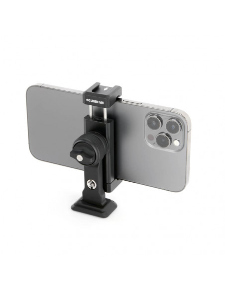 Multifunctional smartphone holder Meet the 3 Legged Thing Phil Universal Adjustable Multi Functional Arca 3/8â & 1/4â Phone Clamp Black, a rugged and versatile smartphone holder and mount that works with Arca Swiss compatible tripods, 3LT's Camera Desk Mount System, Pivot Magic Arms and a range of other accessories. Highlights Fits various phone widths from 58 90 mm Switches from portrait to landscape during use Compatible with Arca Swiss tripod mounts and accessories Cold shoe slot at both ends of the clamp Robust magnesium alloy Phil's clamp is made of rugged magnesium alloy suitable for aerospace and is lined with rubber to protect the sides of smartphones. The clamp is operated by a double lock on the back. The wing button opens and locks the extendable clamp in place, while the knurled ring releases and locks the rotation function from portrait to landscape. Dual ¼â 20 and 3/8â 16 threads Phil is perfect for content creators, with a cold shoe attachment at both ends of the clamp and a 3/8â 16 accessory thread with ¼â 20 adapter at the back ideal for attaching accessories. Fits different phone widths The Arca Swiss compatible base fits all standard 38mm tripod clamps and a 3/8â thread with ¼â 20 adapter allows the plate to be attached to a wide range of other accessories. , Max height: 9.7 cm Max width: 8.4 12 cm Weight: 127 g Mounts: 1/4â 20 & 3/8â 16 Clamp size: 6.5 9 cm 5 year warranty , 1 x 3 Legged Thing Phil Universal Adjustable Multi Functional Arca 3/8" & 1/4" Phone Clamp Black