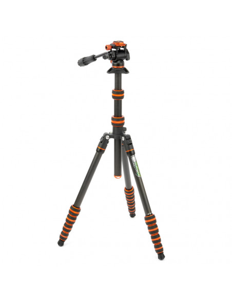 The ideal travel partner The 3 Legged Thing Punks Brian 2.0 with Airhed Trinity Zwart/Oranje is an updated version of our iconic Punks travel tripod. Brian 2.0 offers remarkable stability and rigidity while remaining lightweight and compact. The tallest tripod in the Punks series, Brian 2.0 has an overall height of 1.86 m and can be lowered to just 10.6 cm. Highlights Improved technique and increased stability in leg locking Maximum height of 1.86 m Arca swiss compatible The updated legs For Punks 2.0 have given the leg locks a facelift, with a bright new look and improved technique and increased stability. Like all twist lock tripods, the Brian 2.0 has 3 removable tripod legs. When fully extended, each leg individually measures 1.39 m and can be used as a microphone arm or light stand. This also allows conversion to a table tripod with the addition of 3LT's Vanz tripod leg (sold separately). Air hed The Brian video kit is combined with the AirHed Trinity, a compact pan and tilt head with smooth movements that provides videographers, content creators, wildlife spotters and photographers with a versatile option to support their cameras, telescopes and long lenses. Made of a precision engineered magnesium alloy suitable for use in space, the AirHed Trinity features a 360Ë degree swivel base and a full 170Ë (+90Ë / 80Ë ) tilt range. , Removable and reversible center column Tri Mount plate is refined and offers three hollowed out tracks for accessory mounts 1/4" 20 accessory mount on tripod hood Removable tripod feet Max height 1.84 m Max Height without column 1.78 m Min height 18.3 cm Removable leg Max height 1.39 m Detachable leg (full monopod setup) Max Height 1.91 m Folded length 42 cm 5 Section legs / 2 Section column Payload capacity 5 kg Tripod set weight 1.71 kg Leg angles 23º, 55º, 80º Max Diameter leg tube 23 mm Material Carbon , 1 x 3 Legged Thing Punks Brian 2.0 with Airhed Trinity Zwart/Oranje AirHed Trinity multi purpose video head with Arca swiss plate Toolz Multitool, hex key, coin key, key ring, carabiner and bottle opener Clamshell bag & removable, extendable bag strap