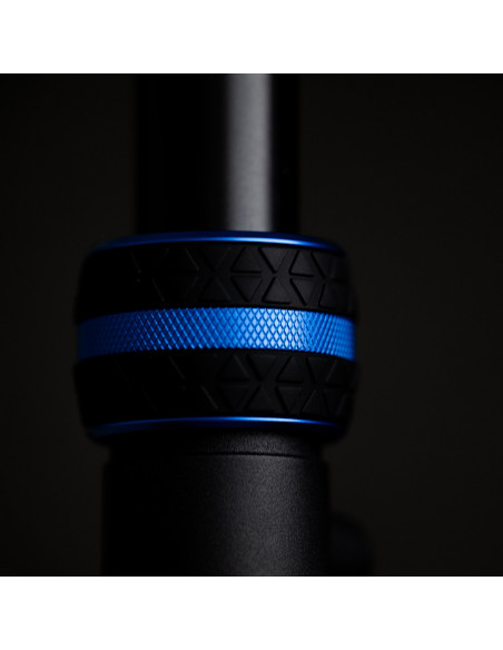 Pursuing art and pursuing new ideas... Inspired by the great Patti Smith, 3 Legged Thing Punks Patti 2.0 & AirHed Blue & Black challenges convention with capabilities you would normally expect from an entry level tripod. The entry level flip lock tripod has had a makeover! The Patti 2.0 is great for beginners and perfect for everyday use. Highlights Ideal tripod for everyday use Four piece flip lock legs Reversible and removable central column Load capacity of up to 10 kg Designed for everyone With 4 piece legs and a single column, Patti 2.0 folds down to just 45.5 cm, making it an ideal tripod to take with you every day. Upside down To allow photographers to unleash their creativity, the Patti 2.0 includes a reversible and removable centre column, ideal for focusing on low level subjects or shooting from an alternative perspective. Optimal and versatile To allow shooting from different heights, the legs of the Patti 2.0 have three optimal angles 23Ë, 55Ë and 80Ë. The widest angle allows photographers to take shots from 11 cm. The Patti 2.0 has refined yet hard wearing ABS plastic flip locks to hold the legs in place. The flip locks have a textured surface for extra grip. The hood of the Patti 2.0 has a convenient ¼" 20 thread that can be used to attach accessory arms, lights or monitors. The Patti 2.0 has a maximum load capacity of 10 kg, the largest capacity of any tripod in its class. For the first time, the flip lock tripod has a detachable leg. This can be coupled to the centre column to create a full fledged monopod. Attach Our patented Tri Mount plate has three hollowed out tracks for attaching accessories and allows Patti 2.0 to be folded down even with the column removed., Max height: 1.63 m Max Height without column: 1.33 m Min Height without column (without AirHed): 40 cm Detachable leg Max height: 1.30 m Detachable leg (full monopod setup): 1.66 m Folded length: 45.5 cm 4 Section Legs / 1 Section Column Load capacity 10 kg Weight of tripod set: 1.7 kg Leg angles 23º, 55º, 80º Max. leg tube diameter 23 mm Material: Magnesium alloy 5 year warranty , Punks Patti 2.0 magnesium alloy flip lock tripod AirHed Mini tripod ball head Arca Swiss compatible 38 mm QR Octa quick release plate with ¼" 20 Stagsden camera screw Toolz carabiner multitool with hex key, coin opener and bottle opener Nylon carrying bag with adjustable shoulder strap Microfibre bag for airhed