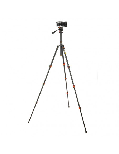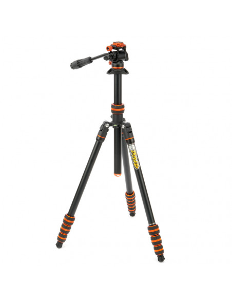 Versatile and stable The 3 Legged Thing Punks Travis 2.0 & Airhed Trinity Black/Copper is a general purpose magnesium alloy tripod that is ideal for beginners and students. The Travis 2.0 is more versatile and capable than your average beginner's tripod. Designed for everyday use, Travis 2.0 is compact and versatile folding to 45.7 cm and has 3 removable monopod legs that allow for a plethora of configurations, including use as a table tripod. Despite folding to just 45.7 cm, Travis 2.0 achieves an incredibly useful working height of 1.66 m. Highlights Features the AirHed Trinity, an Arca Swiss compatible pan and tilt video head Magnesium alloy tripod Sturdy, stable yet lightweight at just 1.86 kg AirHed Trinity The Travis video kit is combined with the AirHed Trinity, a compact pan and tilt head with smooth movements that provides videographers, content creators, wildlife spotters and photographers with a versatile option to support their cameras, telescopes and long lenses. The AirHed Trinity is made of precision engineered aerospace grade magnesium alloy and features a 360Ë degree swivel base and a full 170Ë (+90Ë / 80Ë ) tilt range. Removable legs The Travis 2.0 has three detachable tripod legs that allow for a plethora of configurations, including use as a monopod or boom arm and as a table tripod (using additional footwear). The improved technology and increased stability in the leg locks are weighted to lower their center of gravity making the tripod more stable. It features a removable and reversible center column, and the Tri Mount plate has been refined to offer three hollowed out tracks for accessory mounts and 1/4" 20 accessory mounts on the tripod's hood and is Arca swiss compatible. , Max Height 1.65 m Max Height without column 1.35 m Min height 18,5 cm Detachable Leg Max Height 1.36 m Detachable leg (full monopod setup) Max Height 1.71 m Folded length 45.7 cm 5 Section Legs / 2 Section Column Weight capacity 5 kg Tripod weight 1.86 kg Leg angles 23º, 55º, 80º Max Diameter leg tube 23 mm Material Magnesium Alloy 5 years warranty , 3 Legged Thing Punks Travis 2.0 & Airhed Trinity Black/Copper AirHed Trinity multi use video head with Arca swiss plate Toolz Multi Tool, hex key, coin key, key ring, carabiner and bottle opener Clamshell bag & detachable, extendable bag strap