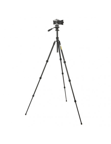 Versatile and stable The 3 Legged Thing Punks Travis 2.0 & Airhed Trinity Black/Black is a general purpose magnesium alloy tripod that is ideal for beginners and students. The Travis 2.0 is more versatile and capable than your average beginner's tripod. Designed for everyday use, Travis 2.0 is compact and versatile folding to 45.7 cm and has 3 removable monopod legs that allow for a plethora of configurations, including use as a table tripod. Despite folding to just 45.7 cm, Travis 2.0 achieves an incredibly useful working height of 1.66 m. Highlights Features the AirHed Trinity, an Arca Swiss compatible pan and tilt video head Magnesium alloy tripod Sturdy, stable yet lightweight at just 1.86 kg AirHed Trinity The Travis video kit is combined with the AirHed Trinity, a compact pan and tilt head with smooth movements that provides videographers, content creators, wildlife spotters and photographers with a versatile option to support their cameras, telescopes and long lenses. The AirHed Trinity is made of precision engineered aerospace grade magnesium alloy and features a 360Ë degree swivel base and a full 170Ë (+90Ë / 80Ë ) tilt range. Removable legs The Travis 2.0 has three detachable tripod legs that allow for a plethora of configurations, including use as a monopod or boom arm and as a table tripod (using additional footwear). The improved technology and increased stability in the leg locks are weighted to lower their center of gravity making the tripod more stable. It features a removable and reversible center column, and the Tri Mount plate has been refined to offer three hollowed out tracks for accessory mounts and 1/4" 20 accessory mounts on the tripod's hood and is Arca swiss compatible., Max Height 1.65 m Max Height without column 1.35 m Min height 18,5 cm Detachable Leg Max Height 1.36 m Detachable leg (full monopod setup) Max Height 1.71 m Folded length 45.7 cm 5 Section Legs / 2 Section Column Weight capacity 5 kg Tripod weight 1.86 kg Leg angles 23º, 55º, 80º Max Diameter leg tube 23 mm Material Magnesium Alloy 5 years warranty , 3 Legged Thing Punks Travis 2.0 & Airhed Trinity Black/Black AirHed Trinity multi use video head with Arca swiss plate Toolz Multi Tool, hex key, coin key, key ring, carabiner and bottle opener Clamshell bag & detachable, extendable bag strap