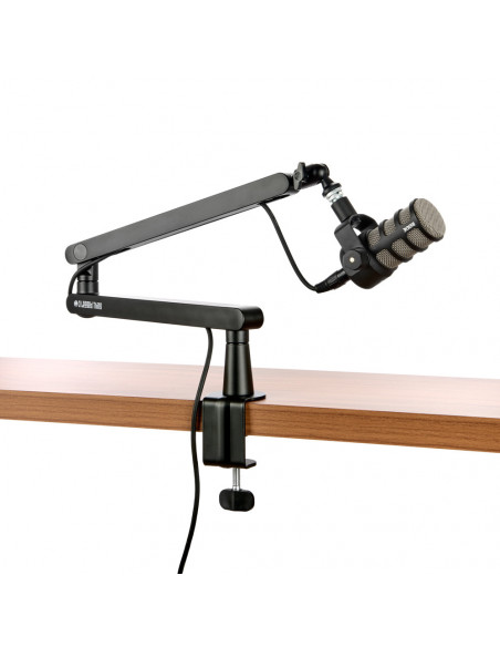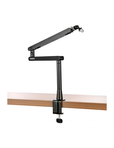 The microphone arm for live streamers and podcasters Named after Steve Wright, famous for his BBC zoo style afternoon shows, the 3 Legged Thing Steve Professional Livestream & Podcasting Microphone Arm is a compact microphone arm ideal for live streamers and podcasters. It comes with a detachable extension column for flexible height adjustment and equipment space for optimal positioning. Built in cable management helps keep the workspace organised. Steve can be attached with a clamp or grommet and is an excellent choice for versatile audio setups where free space for audio and computer equipment is essential. Highlights Compatible with standard microphone threads Smooth omni directional movement and 360Ë rotation Integrated cable management system Choice of desk clamp or pass through desk mount Supports microphones weighing up to 1 kg Strong and stable Compatible with standard microphone threads, thanks to the included 3/8â and 5/8â adapters, Steve can support microphones weighing up to 1 kg / 2.2 lb. Steve is compatible with all microphones, including professional USB shock mounted microphones or phantom powered condenser microphones. , Max Height: 14.4 70.6 cm Min height 17.6 cm Max Width 74 cm Folded length: 40.5 cm Weight; 1.7 kg Load capacity: 1kg Mounting: desk clamp/rough mount Clamp size: 1 55cm/04 22â Panning: 360° Product mount: 3/8â 16 & 5/8â 11 Material: magnesium alloy 5 year warranty