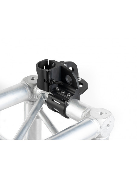 The box corner The 9.Solutions Box Corner Coupler is a quick way to create 50mm tube frames that can be used for structures such as softbox frames. Highlights Quickly create a tube frame with the box corner Easily integrated with standard truss components Load capacity of 100 kg The system can be easily integrated with standard truss components that also use the 50 mm tubes. Corners can also be used along the side of a tube for extra reinforcement of a structure. The corners contain set screws that can be used to additionally secure the position of the tubes., Weight: 880 g Span: 50mm Load capacity: 100kg (Tensile strength in fastening direction) Colour: Black Main materials: aluminium, stainless steel, steel 2 year warranty