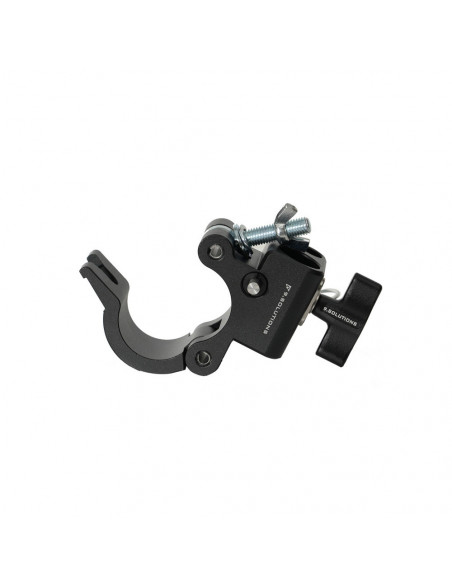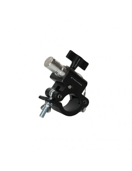 Tube coupler with quick acting locking receivers The 9.Solutions Coupler with Junior and Baby pin receiver is a 50mm pipe coupler with quick acting locking receivers for Junior and Baby pins. The transit receivers feature a deadbolt locking mechanism that allows a pin to be quickly locked into position. An additional rotary knob ensures the pins rotate properly and acts as a double locking device. Highligths Tube coupler with quick action locking receivers for Junior and Baby pins Fitted with a deadbolt locking mechanism Load capacity: 250 kg A lynch pin is included for triple security of the Junior pin., Weight: 700 g Clamp size: 50mm Pin receptor sizes: 1 1/8" Junior (28mm) and 5/8" Baby (15.8mm) Load capacity: 250 kg (tensile strength in fastening direction) Colour: Black Materials: Aluminium, stainless steel, steel 2 year warranty