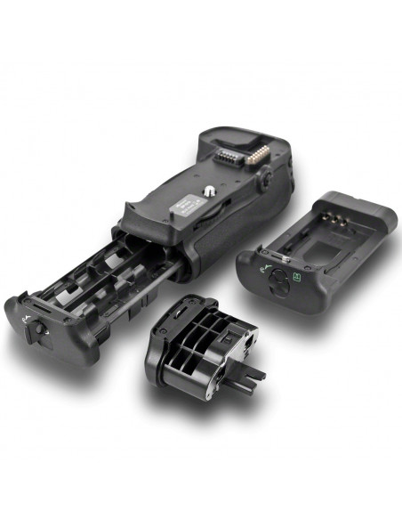 The battery grip can be used with 2 batteries of the type EN-EL4a or 8 commercially available AA batteries (clip included in delivery).