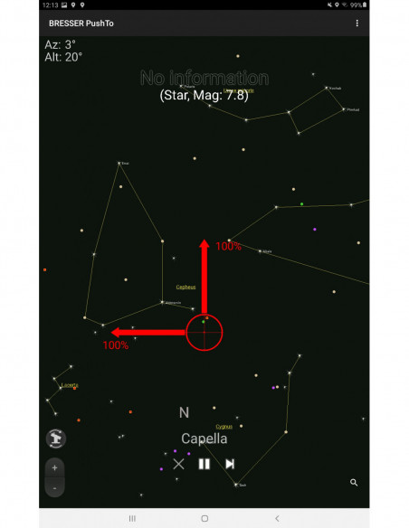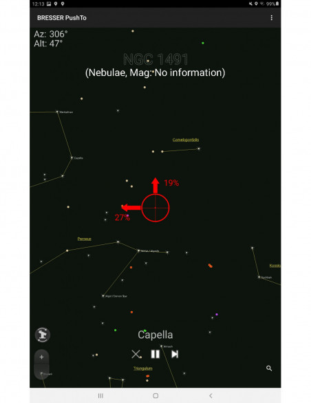 _x000D_ The simple operation and minimal setup make this high-quality reflector telescope a great choice for beginners. Just download the BRESSER PushTo Navigation Smart App, quickly initialize the telescope, and your current viewing direction will appear with a crosshair on your mobile device’s star map. This is made possible by the telescope’s built-in sensors and a Bluetooth connection to your device. And for easy manual adjustment, slip clutches are installed in both axes.