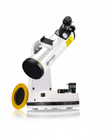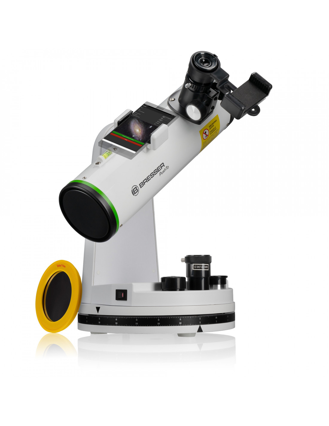 _x000D_ Moon, planets, star clusters, and bright nebulae: The BRESSER PushTo Navigation Smart App allows you to gaze through the telescope and admire the universe’s marvels within seconds. Eager to capture the moon’s beauty in photos? Then easily embark on your astrophotography journey with the included smartphone adapter. Additionally, the solar filter enables you to safely observe and photograph our sun by day. The PushTo NT-76/350 is your ultimate versatile telescope for both day and night.