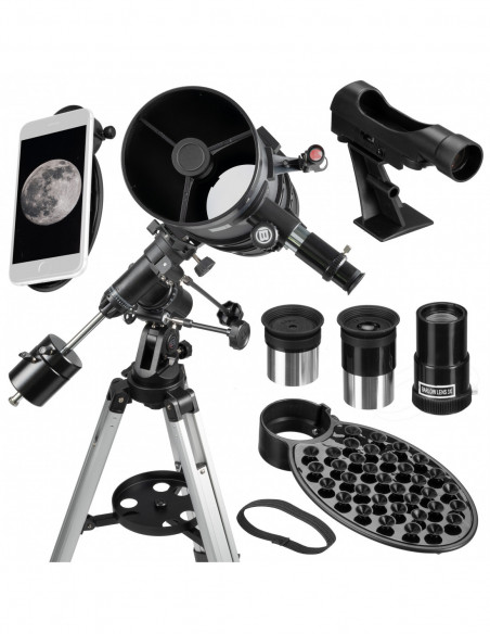 _x000D_ The astronomical telescope comes with a wide range of equipment so that you can start admiring the Moon, planets or the Sun straight away. At night, the LED viewfinder helps you keep an overview of the sky. Once installed parallel on the tube and correctly aligned, the small red dot shows you where the telescope is pointing when you look through it. This way, you can align the optics precisely and find celestial bodies more quickly before you then take a closer look with the high magnification.