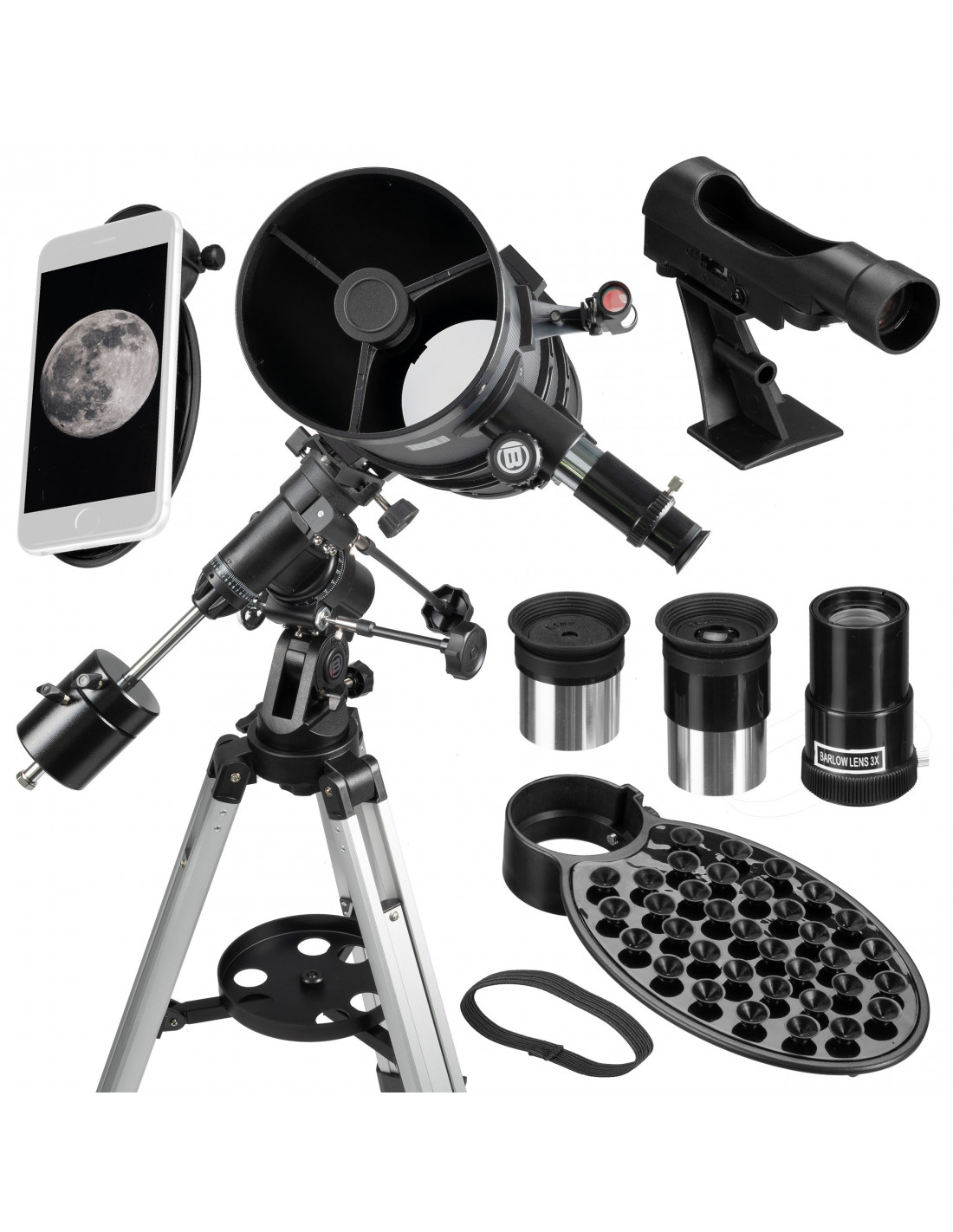 BRESSER Pollux-II 1501400 EQ3 Reflector Telescope with Smartphone Adapter Solar Filter