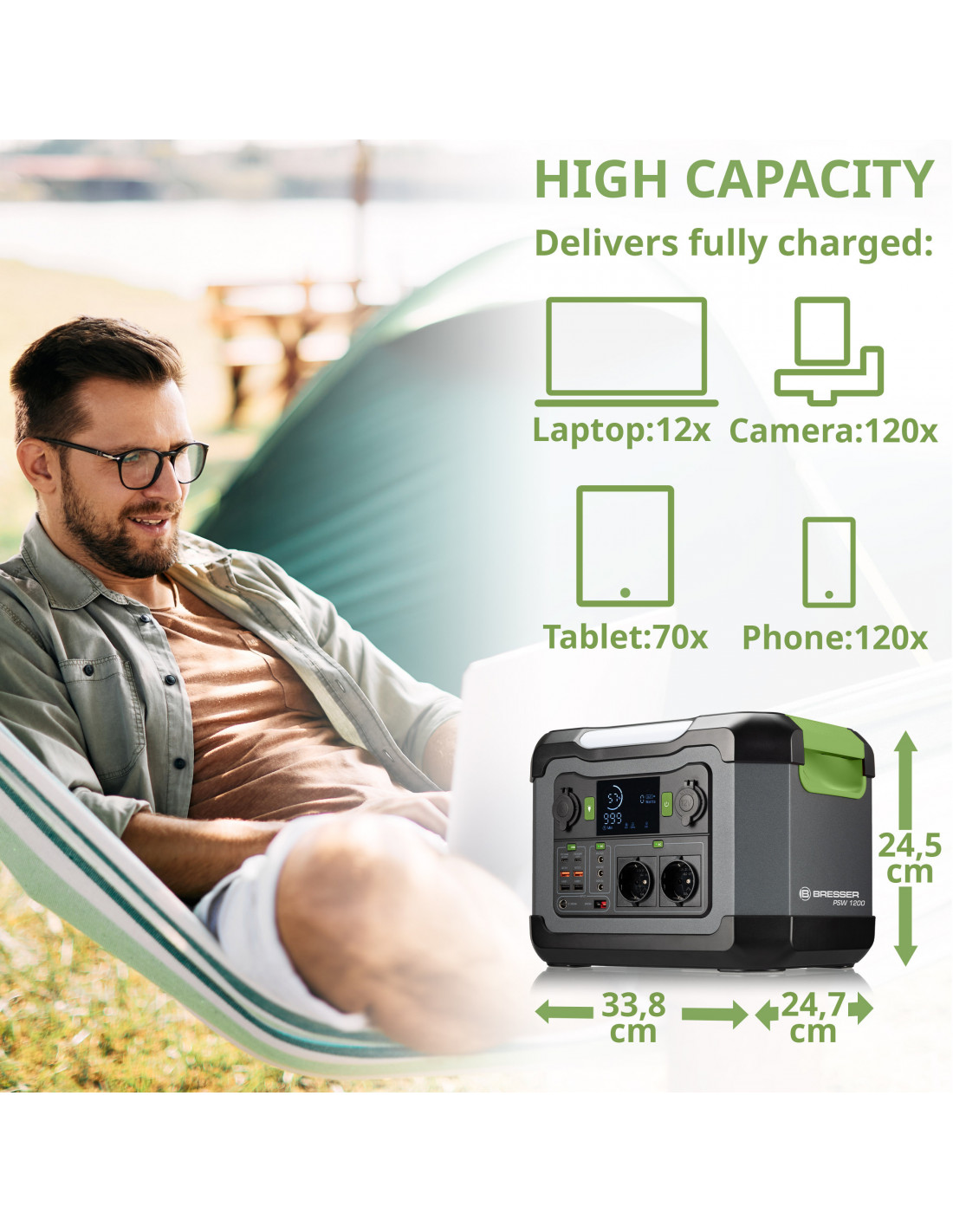 BRESSER Set Portable Power Station 1200W Solar Charger 120W