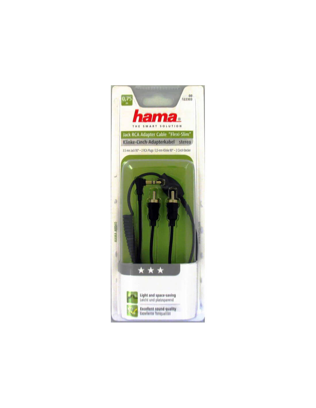 HAMA Kabel Audio 3.5mm-2xRCA Vinklad Coiled Guld Svart 0.75m