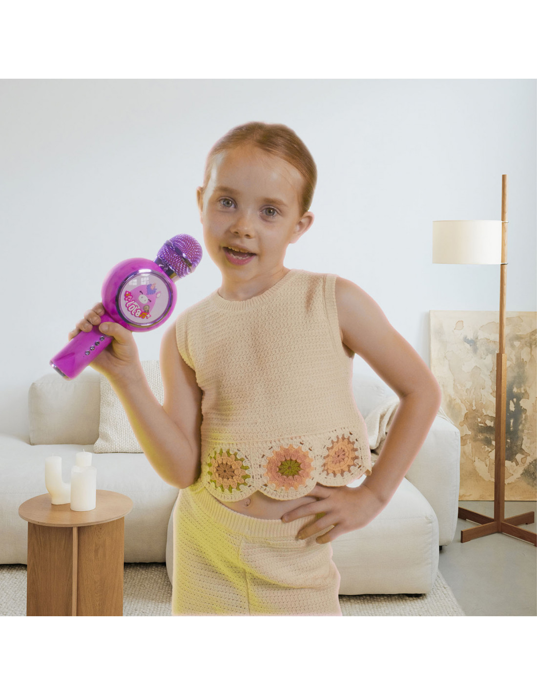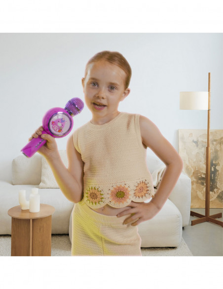 A karaoke microphone from Squishmallows with Bluetooth and voice changer features.