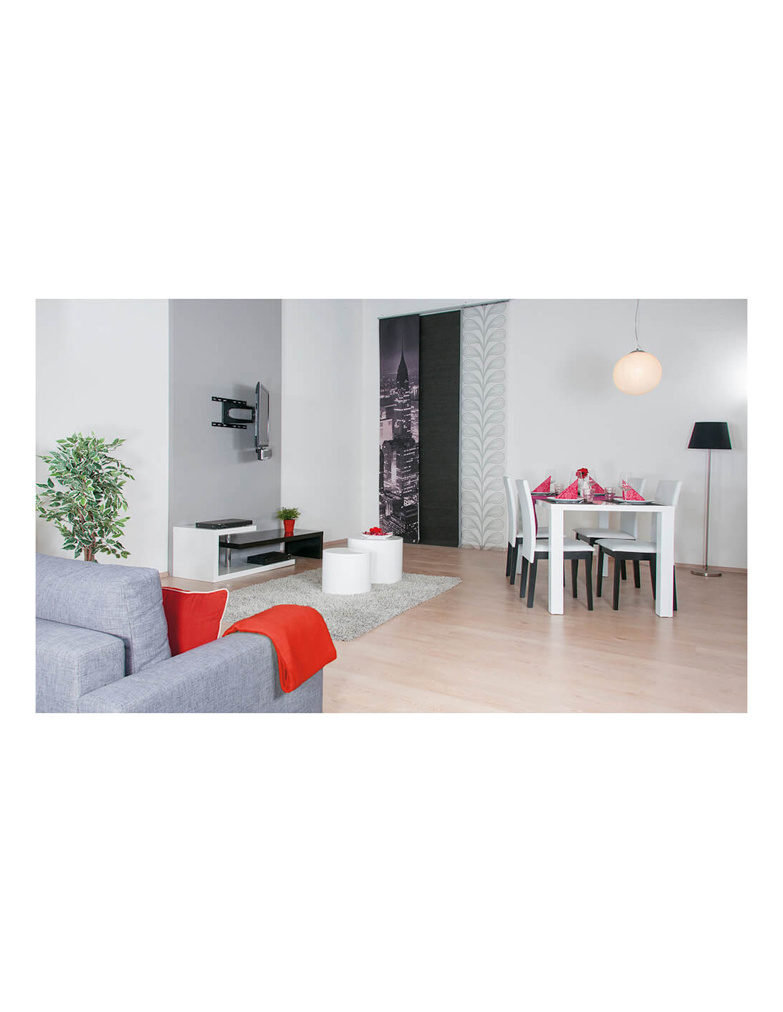 - Kan installeres over og under fjernsynet