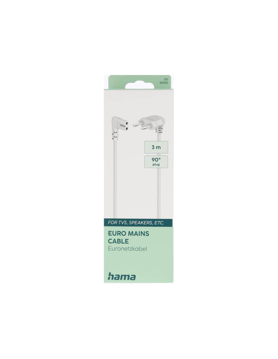 HAMA Power Cable Euro Plug Angled White 3.0m