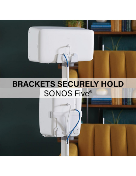 Floor stand designed to hold Sonos Five And Play:5 speakers in either vertical or horizontal orientation. All floor compatibility, carpet spikes and rubber pads included.