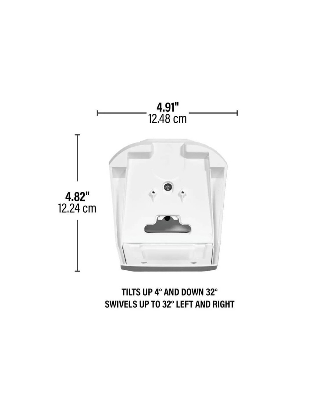 - Speaker tilts 32° left and right and 4° up and 32° down