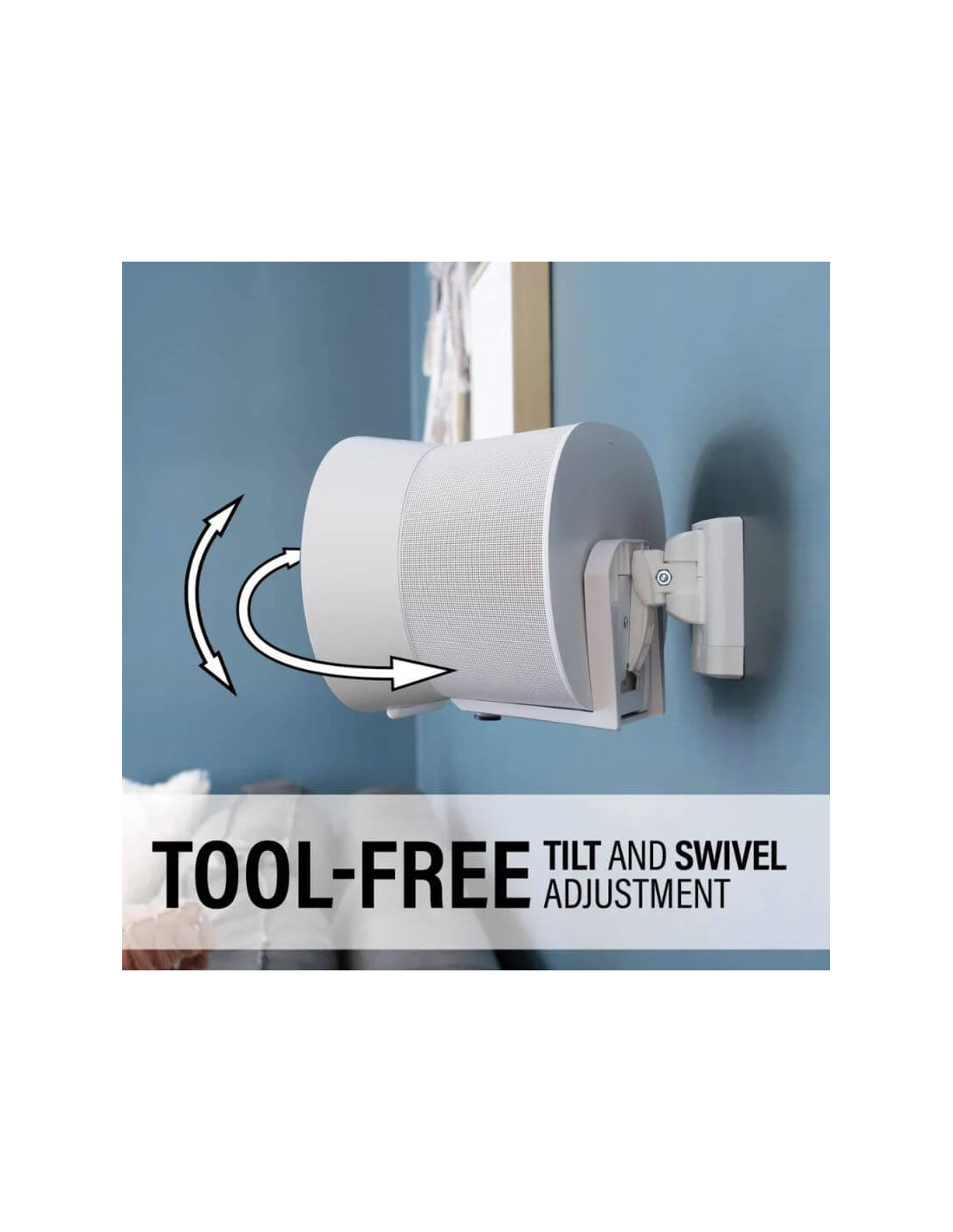 Sanus tilt and swivel wall mount designed to blend seamlessly behind Sonos Era 300 speakers