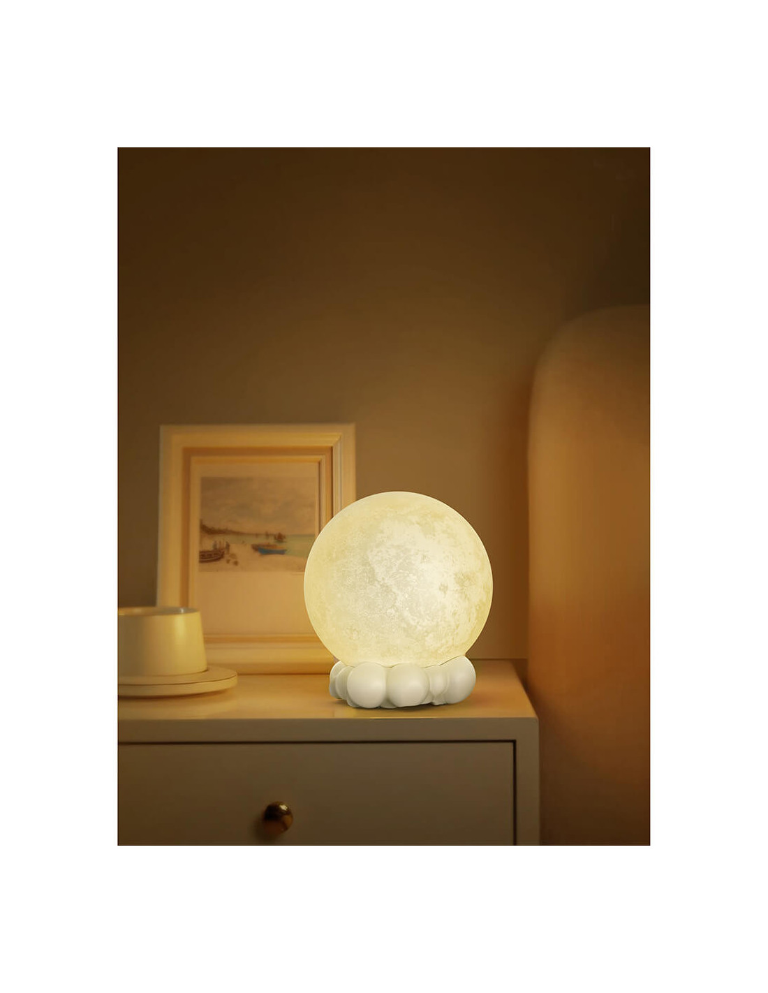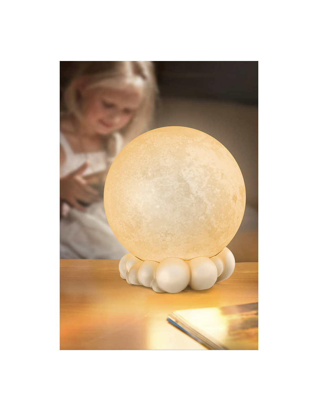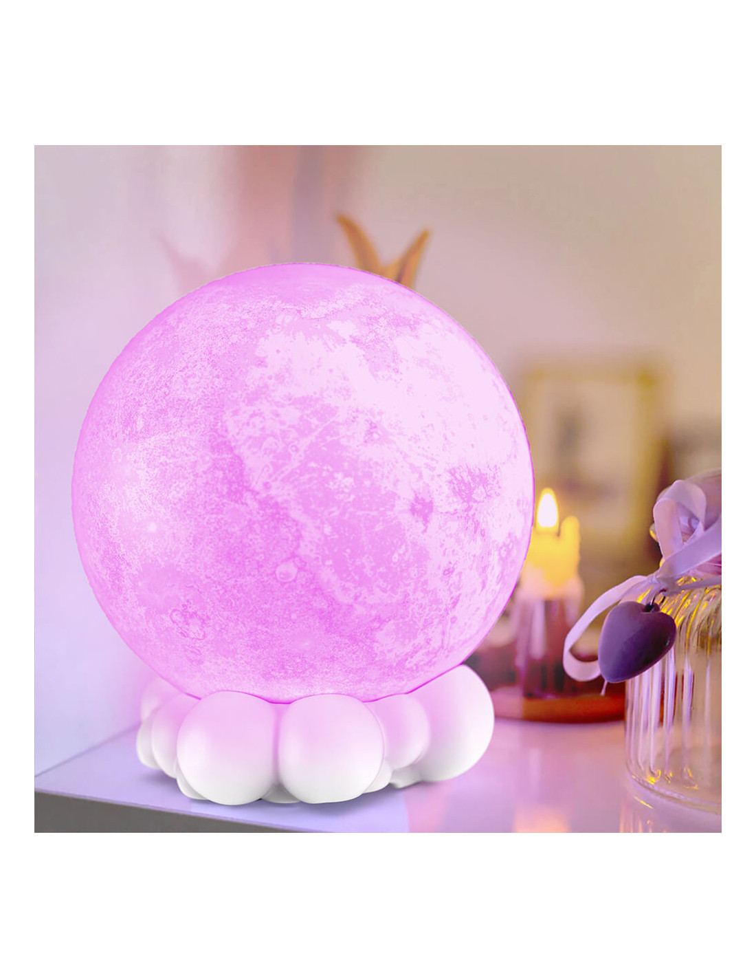 Moon speaker with powerful sound, soft lighting with selectable color via remote control add a nice decorative touch while playing music.
