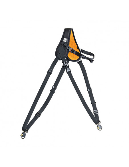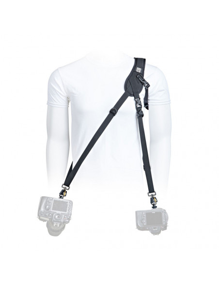 The original camera sling! The Blackrapid Hybrid X Extra Comfort Single/Double Camera Sling is a patented double camera strap that allows you to carry two cameras, one on each side, with the strap resting solely on the left shoulder. The X model is designed for comfort and has extra padding for support during long photo sessions. Highlights Allows you to carry two cameras Has adjustable straps Is comfortable and offers extra support Comfortable and extra support Hang your 70 200 on one side and your favourite shorter lens on the other, and still keep one shoulder free to carry your camera bag. The shoulder pad is made of nylon monomesh, curved TPE foam and polyester airmesh and keeps you cool and comfortable during demanding photo shoots. Double or single use The Hybrid X double camera sling can be used as a double or single camera sling. The strap on the left side is removable. Includes adjustable nylon straps with buckles, an integrated removable forearm stabiliser, 2 complete sets of connectors (CR 3), 2 LockStar, 2 FastenR (FR 5) mounting hardware and a polyester dust bag., Hybrid X can be used as a double or single camera sling. Right sling (cross body) 167 cm adjustable. Left strap (removable): 150 cm adjustable. Extra wide shoulder pad made of nylon monomesh, TPE foam and polyester. Width of nylon strap: 2.5 cm. Weight: 323 g 2 year warranty , 2 x Swivel carabiners 2 x LockStar II 2 x FastenR (FR 5) IT 2 x Camera Safety Tether IL 1 x Forearm stabiliser 1 x Dust bag