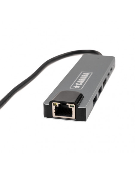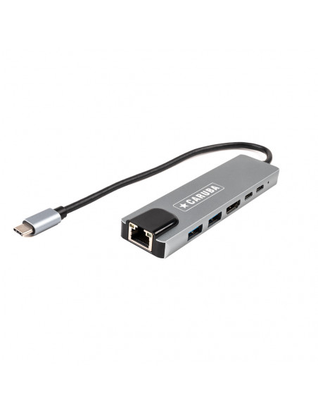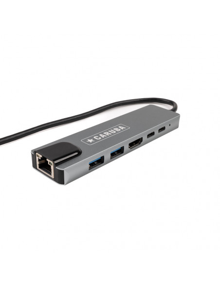 Discover unknown connectivity This compact and powerful USB HUB 6 in 1 Ethernet takes your USB device to new heights and opens the door to a limitless connectivity experience. Highlights Easily expandable to different devices Benefit from multiple ports such as PD port, USB A port, HDMI port, Ethernet and USB C port. PD (Power Delivery) Input Give your device a boost. Thanks to 87W, you can quickly charge devices while performing other tasks. Two USB A Ports The USB 3.0 port has a data transfer rate of 5Gbps and the USB 2.0 port has a data transfer rate of 480Mbps HDMI Port Enter a visual revolution. Connect your device to a display and experience impressive 4K image quality with the HDMI 4K/30Hz port. Ethernet Port Never lose connection again. The Ethernet RJ45 100Mbps port gives you a reliable and fast internet connection for seamless online experiences. Extra USB C Port Increase your connectivity options with an extra USB C 480Mbps port. Now you can connect and sync even more devices. , 1x PD input 87W 1x USB A 3.0 5Gbps 1x USB A 2.0 480Mbps 1x HDMI 4K/30HZ 1x Ethernet RJ45 100Mbps 1x USB C 480Mbps Cable length: 24 cm (incl. connector) 3 year warranty , Caruba USB HUB 6 in 1 Ethernet