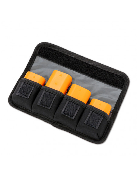 Have four extra batteries for your DSLR camera quickly at your hand with the Caruba Battery Holder! This compact but sturdy accessory pouche is easy to open and close thanks to the Valcro closure. The battery holder is made of high quality material and offers excellent protection. Attach the battery holder to your belt or a bag strap with the belt loop.