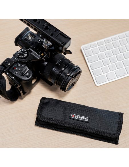 Have four extra batteries for your DSLR camera quickly at your hand with the Caruba Battery Holder! This compact but sturdy accessory pouche is easy to open and close thanks to the Valcro closure. The battery holder is made of high quality material and offers excellent protection. Attach the battery holder to your belt or a bag strap with the belt loop.