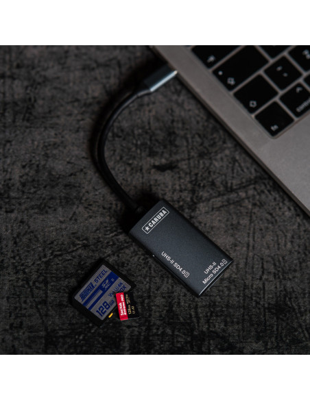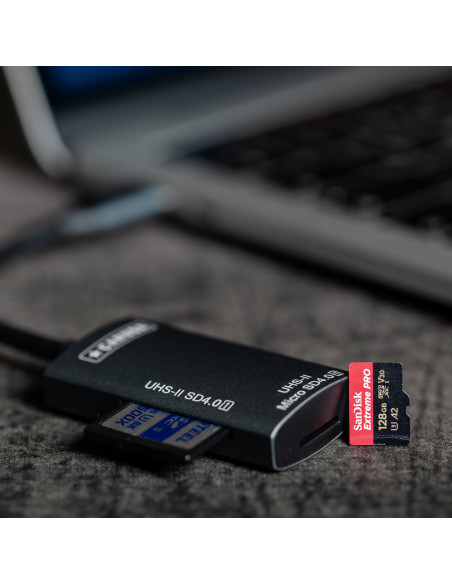 Lightning fast data transfer The Caruba Cardreader SD 4.0 USH II + Micro SD allows you to transfer files from your SD 4.0 USH II or Micro SD cards to your computer at lightning speed. Highlight Suitable for SD 4.0 USH II and Micro SD cards. Suitable for Windows, MAC and mobile devices Plug and play The card reader is equipped with an LED indicator and you can connect it to your PC, laptop or smartphone using the USB C connection. Transfer your files at lightning speed with a data transfer rate of up to 10Gb/s., Suitable for SD 4.0 USH II and Micro SD cards. Suitable for Windows, MAC and mobile devices Plug and play Transfer rate up to 10Gb/s Cable length including connector: 12 cm 3 year warranty , Caruba Cardreader SD 4.0 USH II + Micro SD