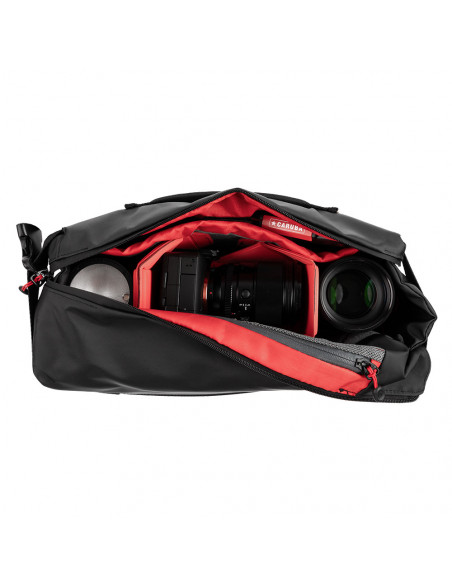 The compact bag with lots of storage space The Caruba Compex Chase 200 is a compact shoulder bag where you store your compact SLR or system camera, one or two lenses and accessories. Highlights The compact shoulder bag with plenty of storage space Origami dividers Various storage options Spacious main compartment The bag offers space for a camera body, one or two lenses and accessories such as memory cards, batteries, cables and personal belongings. Origami dividers The main compartment features removable dividers with an origami design. It allows you to now carry even more stuff. Several handy storage compartments On the front and back of the bag you will find a zip pocket for accessories The bag is equipped with a handle in addition to the shoulder strap. In addition, it is possible to wear the bag on your belt., Compact shoulder bag with detachable shoulder strap Suitable for a compact DSLR or system camera with 1 or 2 lenses and accessories Origami dividers Several extra pockets Can be worn on your belt External dimensions (wxdxh): 40 x 18 x 24 cm Internal dimensions (wxdxh): 36 x 16 x 22 cm 25 year warranty , 1 x Caruba Compex Chase 200