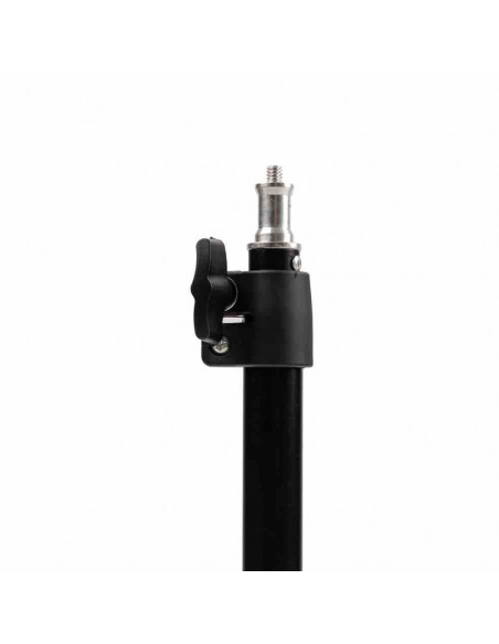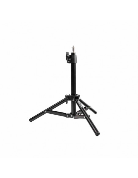 Solid and all round The Caruba Lamp Tripod LS 50 50cm is suitable for various types of lighting, for example ring lamp, a torch or an LED lamp. It has a max height of 50cm and can carry up to 3kg without any problems. Highlights Max. height of 50 cm Carries up to 3 kg Suitable for various types of lighting The tripod is easy to store with a minimum length of 31 cm, it has a spigot attachment with ¼" thread. It is suitable as both a floor and table stand. , Max. height: 50 cm Min. height: 33 cm Folded length: 31 cm Sections: 2 Spigot with ¼" thread Load capacity: 3 kg Weight: 384 g 3 year warranty , 1 x Caruba Light Stand LS 50 50 cm
