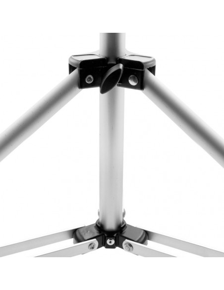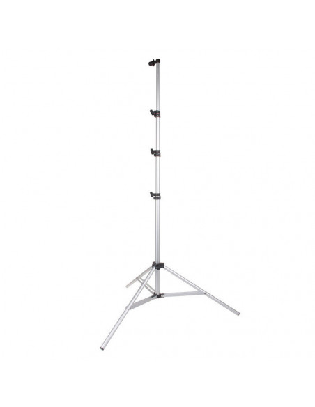 The Caruba Reflector Stand Silver is an aluminium stand for backgrounds, collapsibles and reflectors with dimensions of 152 x 183 centimetre. The stand height can be adjusted from 85 to 215 centimetre. The large 90 centimetre spread ensures a stable base., Stand with three sections Fixed background / reflector clip Made of aluminium Adjustable in height from 85 to 215 centimetre Transport length of 72 centimetre Weights 1.1 kilogram 3 year warranty