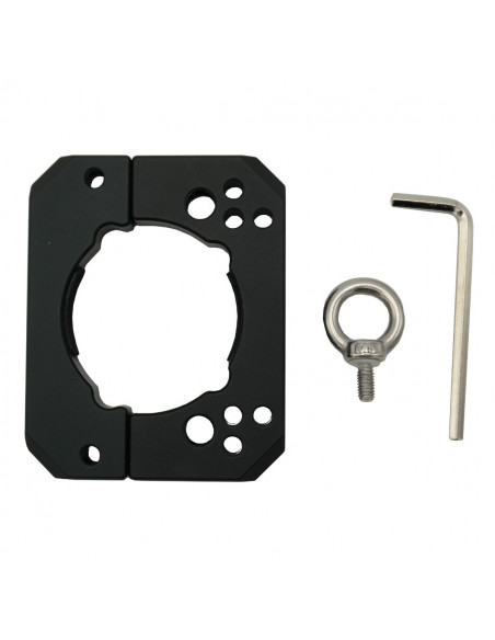 The Caruba Ronin S Clamp is a two piece mounting plate for DJI Ronin S that you attach around the gimbal handle. You fix it with the 2 screws, which you tighten with the included Allen key.