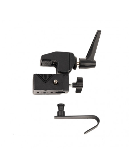 Combine your options Attach the Sky hook to your screw clamp and you can hang your accessories from it. Highligths Handy attachment to attach arms and other equipment to tubes or flat surfaces Diameter from 10 to 55 mm Sky hook to hang accessories from. Caruba Screw Clamp Large The Caruba Screw Clamp Large is a handy attachment to attach arms and other equipment to tubes or flat surfaces such as, for example, a tripod leg, shelf or table. The clamp fits tubes from 10 to 55 millimetres in diameter. A wedge shaped insert is included for secure attachment to flat surfaces. This sturdy and durable clamp features a metal lever for secure and firm attachment. It is equipped with a standard spigot making it usable with any type of fixture. Sky hook The Caruba Sky Hook for Screw Clamp lets you hang accessories such as power packs, cables, a sandbag and other accessories from your tripod or pole. , Fits tubes from 10 to 55 millimetres in diameter Features a wedge shaped insert Robust metal construction Weighs 524 grams 3 Year warranty , 1 x Caruba Screw Clamp Large 1 x Standard spigot 1 x Caruba Sky Hook for Screw Clamp