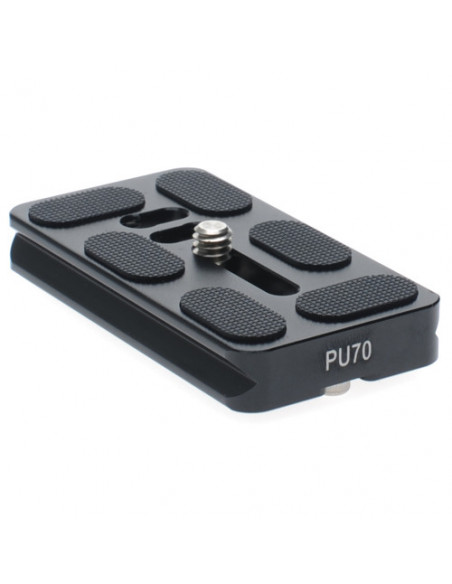 The universal Caruba Tripod Plate PU70 is useful to replace your 'old' quick release plate or if you want to mount another camera on your tripod. The top of the plate is covered with anti slip material which also protects the connection of your equipment. The quick release plate is provided with a screw with a 1/4" screw thread and a D ring. What makes this tripod plate extra handy is the built in connection for a carrying strap. ,