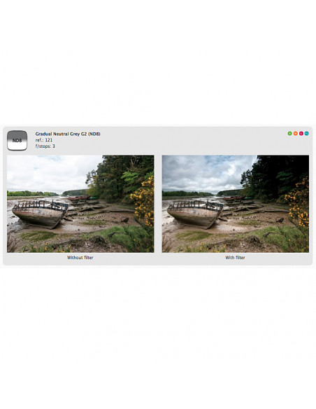 The lower half of the filter is transparent with a transition to the ND effect in the upper half of the filter. The X121 ND filter is colour neutral and gives you more exposure options when you are shooting skyline or landscape photos. The length of the filter allows you to position the effect precisely in the filter holder. No more skies without detail!,