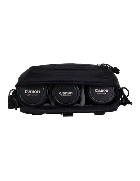 The Harney Pouch is a versatile weather resistant padded case that can be used in a variety of ways for an assortment of gear. It includes a shoulder strap allowing it to be worn individually in addition to its ability to be mounted on a pack via MOLLE straps. The padded main compartment includes two dividers and is large enough for three medium sized lenses or one lens and spare body. It also includes two front zipper pockets perfect for batteries, chargers, and filters. For Mountain Series users packing a Large Pro ICU, the Harney is shaped perfectly to stack right on top, allowing quick access and removal of frequently used gear. ,
