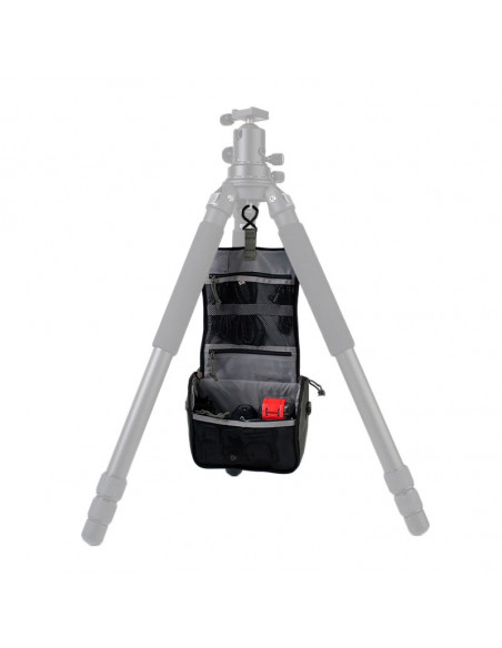The F Stop Elkhorn is a bag that offers you extra space to carry even more accessories such as triggers and cables. It is therefore ideal for photo shoots on location. In addition, you can also use the bag to carry an action cam, for example. The bag has a hook that allows you to hang it on the hook of the center column of a tripod. The Elkhorn can be used as a normal bag, but is also a perfect addition to the Mountain series of backpacks from F stop. , Weather resistant top and front panel Fold out hook so you can hang the bag on a tripod Molle attachment system for attachment to belt or backpack Numerous internal zip pockets and elastic mesh pockets Two D rings for attaching an optional shoulder strap Clip in clip out key ring External dimensions (lxwxh) 8 x 19.5 x 18cm Warranty 2 years