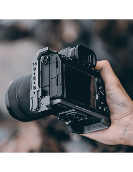 Ergonomic design for comfortable holding The Falcam F22 & F38 Quick Release L Bracket makes it easier to switch between setups or expand your camera with accessories. It is designed specifically for the Sony A7M4 and A7S3 camera systems and can be used with Falcam's F22 and F38 Quick Release Ecosystem. Highlights Always access to all camera functionalities Easy mounting and dismounting Various attachment options for accessories Made of aluminium with anti slip rubber This L bracket is specially designed for the Sony A7M4 and A7S3 camera systems, which ensures the L bracket attaches securely and safely around these cameras. When you mount the L bracket, you continue to have access to the camera's buttons and battery compartment. The built in system of the L bracket allows you to easily install or remove products with a single push of a button. This improves the efficiency of your work. In addition, it features multiple interfaces including a 1/4" 20 screw hole, a coldshoe and more. Also, Falcam's F22 and F38 Quick Release Ecosystem products can be mounted on this L bracket, enabling various extensions. Made of high strength aluminium, the L bracket also features an anti twisting hole and non slip rubber pads to keep your camera as safe as possible. A sandblasted and anodised treatment ensures the best quality. , Features non slip rubber pads Works with Falcam's F22 and F38 Quick Release Ecosystem Features several mounting points Monet grey colour Made of aluminium Weighs 138 grams 2 year warranty , 1 x L bracket 1 x Screw 1 x Allen key 1 x Wrench
