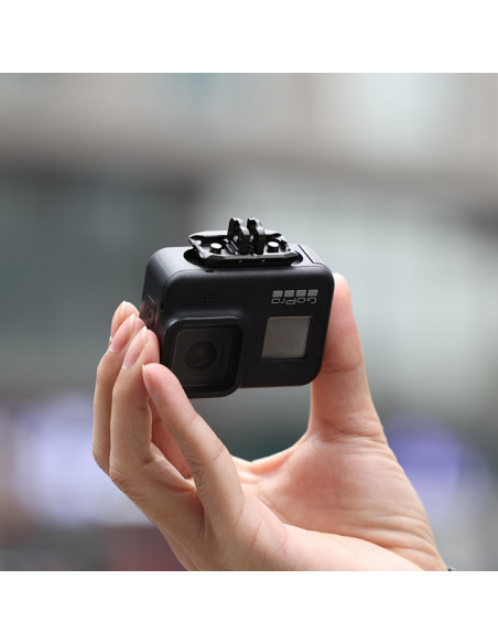 Action camera and accessory attachment The Falcam F22 Magnetic base for Gopro to Action can be attached to the bottom of a DJI or GoPro action camera. Highlights Use with 2 point action mounts Magnetic base Sturdy mounting Mount various accessories Action camera compatibility The dual ear clips can be flipped down to make the base compatible with 2 point action mounts. When not in use, these ear clips can be flipped up. The base can also be used with DJI action mounts thanks to its magnetic base. Accessory compatibility A 1/4" 20 thread on the magnetic base makes it easy to use with tripods or selfie sticks. In addition, various F22 accessories from Falcam can be mounted on the base when using an F22 Quick Release plate., Model: 3235 Colour: black Material: aluminium Dimensions: 36.8 x 22 x 9.5 mm Net weight: 11.3 g 2 years warranty , 1 x F22 Magnetic base for Gopro to Action 4 x M2 torx screw 1 x T5 torx wrench