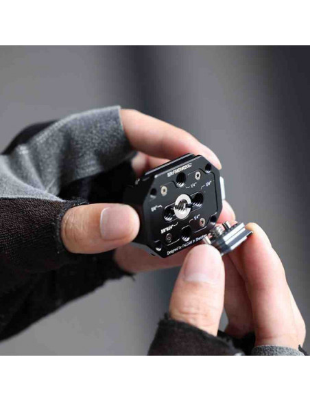 Easy and fast Arca type mounting The Falcam F38 Multi hole Quick Release Kit is a camera mounting system with a quick one button release and Arca type compatibility. It consists of a Falcam F38 Multi Thread Quick Release Base and F38 Nonslip Quick Release Plate. Highlights Made of aluminium Compatible with various connectors Quick mounting Falcam F38 Multi Thread Quick Release Base Experience easy and quick mounting of your camera or accessory with the Falcam F38 Multi Thread Quick Release Base and separately available Arca type plate. The base is made of aluminium and features a one button release so you can quickly attach or detach the accessory or camera. It also features multiple 1/4" 20 threads and can be used with accessories from Falcam's F38 Quick Release System. Falcam F38 Nonslip Quick Release Plate Use the Falcam F38 Nonslip Quick Release Plate to achieve a quick transition between support devices with just one push on the button. It is designed to use with Falcam's F38 Quick Release accessories and other Arca type base plates. Non slip rubber protects your mounted product and the plate includes a 1/4" 20 screw with lock washer., Model: F38B3404 Black colour Made of aluminium Measures 53.4 x 38 x 20.8 mm Weighs a net 51.7 grams 2 year warranty , 1 x F38 Non slip Quick Release Plate 1 x F38 Multi hole Quick Release Base 1 x 1/4" 20 screw 1 x 3/8" 16 screw 1 x Hex key 1 x Locking nylon washer 1 x Locking stainless steel washer