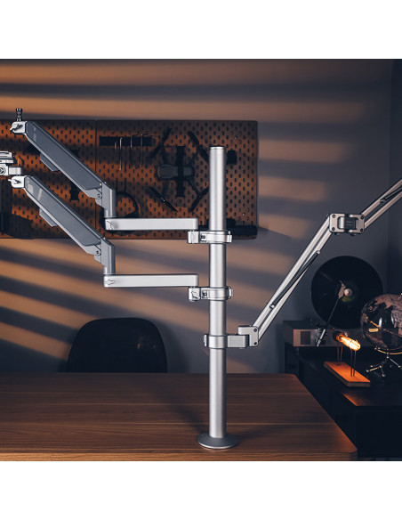 The Falcam Geartree Clamp, 3 Mounting Points for 15.8mm Stud is used to mount accessories to a ceiling floor stand, light stand or desktop stand with a 15.8mm expansion hole. Highlights Easy Installation Multi arm design Durable aluminum material Compatiblity Three 5/8" stud receivers, and three wear resistant POM ring adapters are present on the Falcam Geartree Clamp and they fit round tubes of 1.65, 1.57 and 1.38 diameter., Model:2743 Color: silver white Material: aluminum Dimensions: 148 x 116 x 30 mm Net weight: 315 g 2 years warranty , 1 x Single hole expansion seat 3 x M6*20 hand wrench 3 x M6*8 taper top wire 2 x POM washer (35 ID) 2 x POM washer (40 ID) 1 x H3 Allen key 6 x Velcro strip