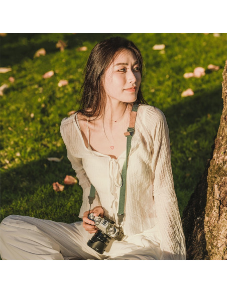 Comfortable and sturdy camera strap The Falcam Maglink Quick Magnetic Buckle Shoulder Strap Lite is a durable and sturdy camera strap that can be worn around your neck or cross body style. Highlights Easily adjustable Dyneema rope Wear and tear warning Thermoplastic buckles High carrying capacity Material The Falcam Maglink Quick Magnetic Buckle Shoulder Strap Lite includes female magnetic buckles that are made of thermoplastic material that will not scratch your camera. Attach the camera strap to the wear resistant Dyneema rope buckles that are connected to your camera. These rope buckles contain a 3 layer wear warning so you can replace your camera strap in time. Easy adjustment The camera strap length is adjustable in two directions, from 790 to 1400 mm. Adjust the belt length easily and quickly with one hand thanks to the suede pull tabs. Comfortable carrying Thanks to the soft PA66 webbing, the belt is comfortable to wear and can easily be adjusted. The maximum load capacity of the rope buckles is approximately 60 kilograms., Model: 3143G Colour: pine needle green Material: PA66, ABS+PC and NdFeB magnet Dimensions: about 790 1400 mm x 19.5 mm Net weight: about 46 grams 2 year warranty , 1 x Maglink Quick Magnetic Buckle Shoulder Strap Lite 4 x Tail Buckles 4 x Disc magnets