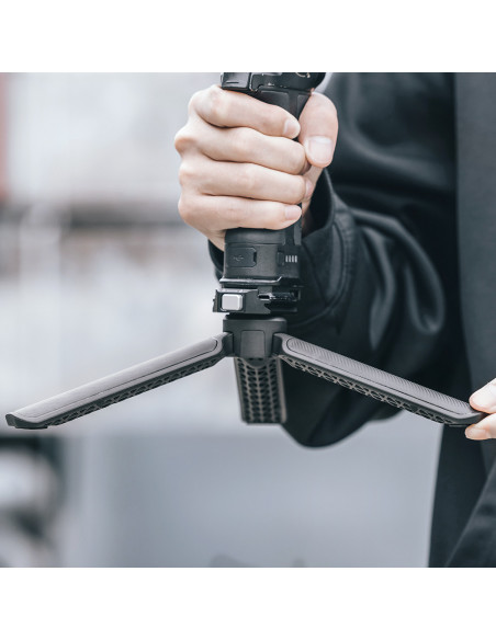 Quick Open Desktop Tripod The Falcam TreeRoot Quick Open Desktop Tripod is a compact tripod that can be converted into a convenient handle. With a load capacity of 5 kg, it can easily support most gimbals and cameras with ease. Highlights Fully openable in one step Non slip and stable Comfortable grip Lightweight and portable Quick open The Falcam TreeRoot Quick Open Desktop Tripod fully opens in one step without pinching. You only need to operate one leg to open it and then all legs open at once. Less handling, no pinching, and quick change between grip and support in a snap. 1/4â universal interface The Desktop Tripod is suitable for most equipment. Anti slip and anti scratch The base and legs are equipped with non slip rubber pads to improve stability. Comfortable grip, fixing in position The textured design on the surface of the leg improves comfort of holding. The unique triangular design on the inside of the tube makes the buckle connection more consistent., Weight: 146 g Length: 158 mm Material: Nylon + Glass fibre + Stainless steel + silicone Colour: Black , 1 x Falcam TreeRoot Quick Open Desktop Tripod