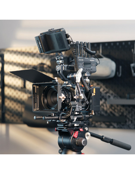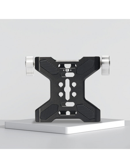 Dual rod base The Falcam Universal Dual Rod Base makes it easy to add rod compatible accessories to your camera setup. Highlights Multi hole interface Mount on Quick Release system Strong and sturdy Compatibility The Falcam Universal Dual Rod Base features two 15 millimetre rod clamps onto which various accessories such as matte boxes or battery plates can be mounted. Accessories from Falcam's F50 Quick Release systems can also be attached for quick and more efficient disassembly and assembly. In addition, non slip rubber pads are fitted to the plate, keeping your equipment in place and preventing it from being damaged. Mounting and locking It is possible to mount your camera on the base plate via a camera mounting screw. The camera can then be attached to a tripod through the multiple 1/4" 20 and single 3/8" 16 threads. The base plate is securely fixed between the two rods via two locking buttons., Model: 3306 Colour: black Material: aluminium Dimensions: about 10,.4 x 78 x 25,3 mm Net weight: 142 grams 2 year warranty , 1 x Universal Dual Rod Base 2 x Knob screw 2 x Camera fixing screw 2 x 3/8 screw
