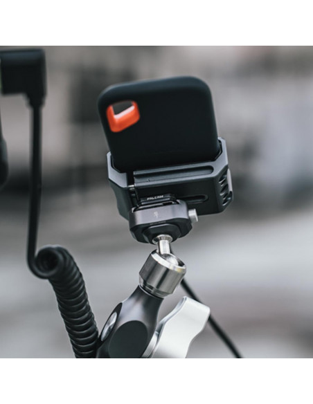 Add an SSD to your setup Use the Falcam Universal Holder for SSD C00B3904 to add an SSD to your setup. Highlights Adjustable clamp interface Multiple expansion ways Suitable for mainstream SSD Easy attachment Attach the bottom of the Falcam Universal Holder for SSD C00B3904 to a camera cage via a 1/4" threaded hole or colshoe interface. A 1/4" threaded hole is built in on the side to which accessories such as a magic arm can be mounted. Sliding cable clamp The cable clamp of the SSD holder is sliding, allowing the position of the clamp to be adjusted. It has a sliding range of 35 millimetres and protects the cable, prevents accidental loosening, and ensures a stable data transfer. Compatibility and extra protection Regular mobile SSD drives with a width of 51 to 64 millimetres can be mounted on the holder. In addition, the holder features large rubber anti slip pads, providing a soft contact surface, absorbing shock and preventing scratches on the hard drive., Model: C00B3904 Colour: grey Material: aluminium Dimensions: 56 x 52 x 27.1 mm Net weight: 64.5 g 2 years warranty , 1 x Universal Holder for SSD 1 x H2.5*6 dual purpose hex key 1 x H3 hex key 1 x H4 hex key 1 x Cold shoe block 2 x Stainless steel washer 2 x Nylon lock washer 2 x Arri positioning columns 1 x M4 head screw 1 x 1/4" screw
