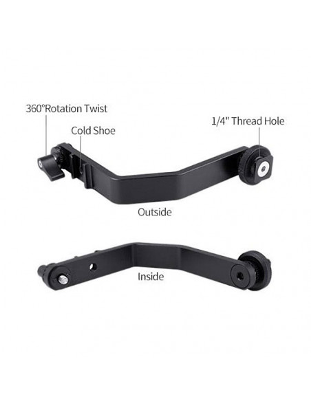 The Feelworld Monitor Tilt Arm for 7" Monitor is a tilt arm for monitors with a screen diameter up to 7 inches, such as the FW278S and LUT7S. Attach your field monitor to the arm and place it directly on your camera and adjust the tilt angle to your liking. The tilt arm has an extra cold shoe on the side for a microphone or other accessory. ,