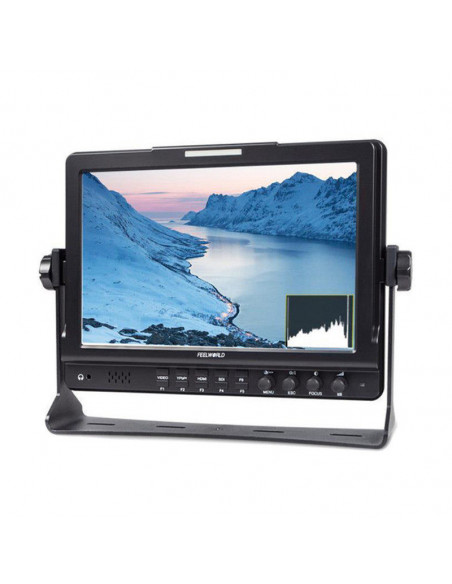 The Feelworld FW1018SPV1 fieldmonitor (with SDI) is a 10 inch monitor with a screen resolution of 1920 x 1200 pixels and numerous image analysis tools. The monitor has a 1/4" screw thread with which you mount it on your camera. With the included U bracket you can easily place it on, for example, a desk.